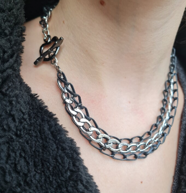 Chunky Black Chain Necklace, Multi Strand Black and Silver Necklace